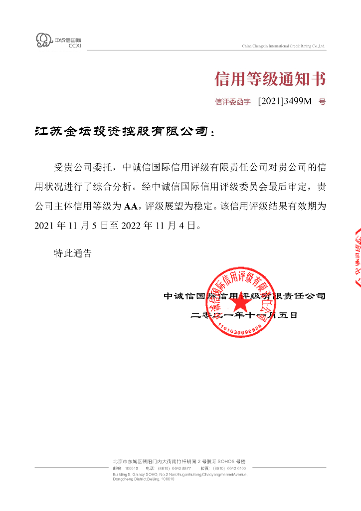 中诚信:江苏金坛投资控股有限公司主体信用评级报告.pdf