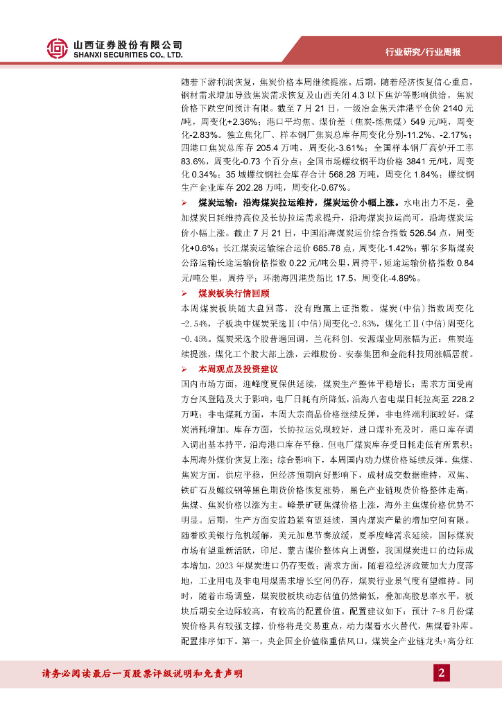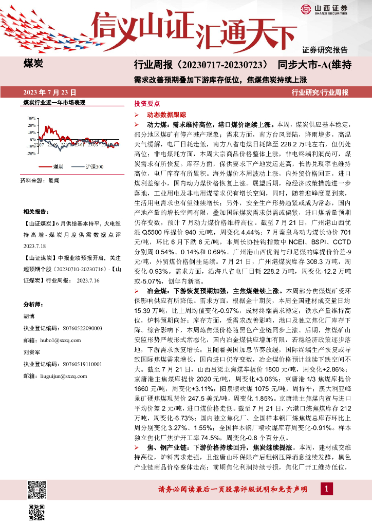 山西证券:煤炭行业周报:需求改善预期叠加下游库存低位,焦煤焦炭持续上涨.pdf