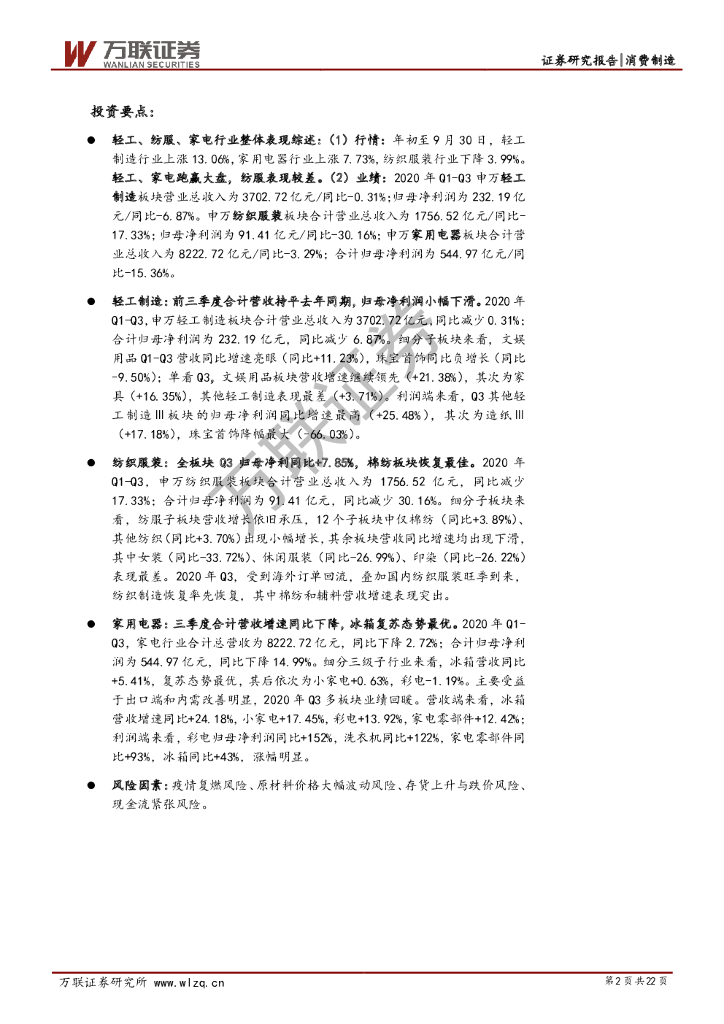 万联证券:消费制造(轻工&纺服&家电)行业2020年三季度综述:Q3业绩反弹明显,关注景气度提升的细分龙头.pdf