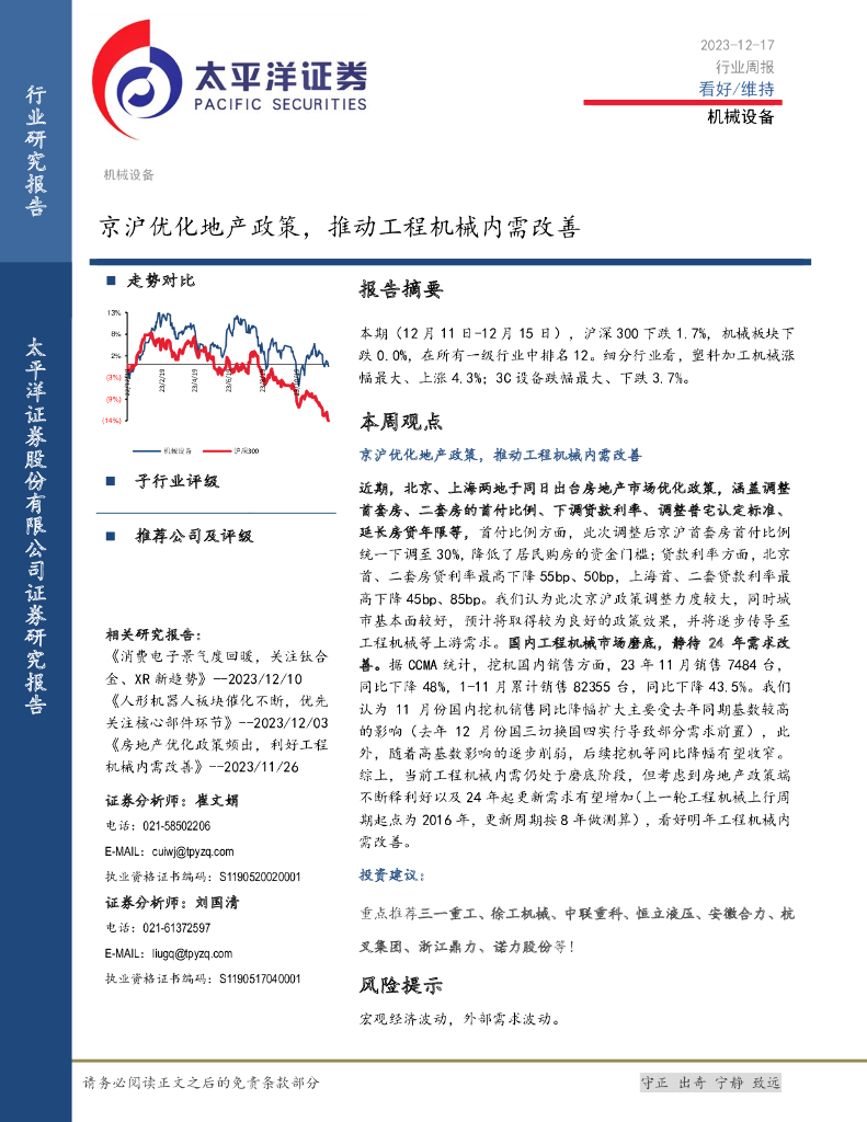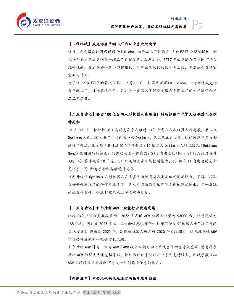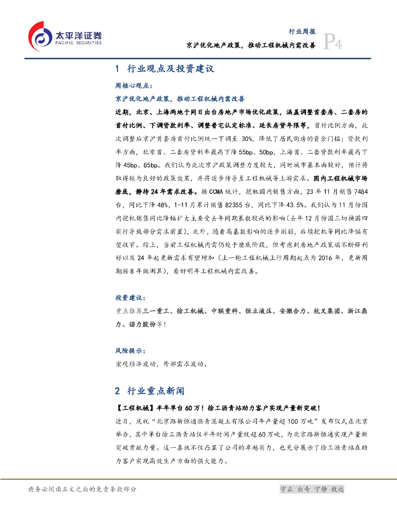 太平洋证券:机械设备行业周报:京沪优化地产政策,推动工程机械内需改善.pdf