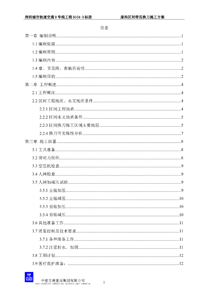 中建深圳城市轨道交通盾构区间气压换刀专项施工方案.doc