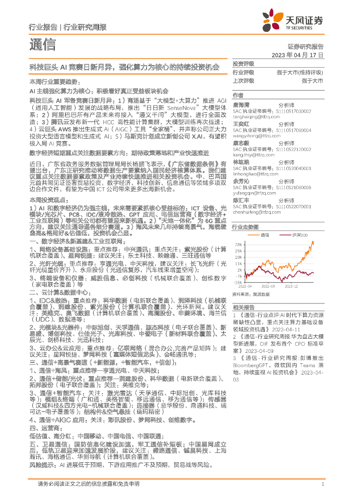 天风证券:通信行业研究周报:科技巨头AI竞赛日新月异,强化算力为核心的持续投资机会.pdf
