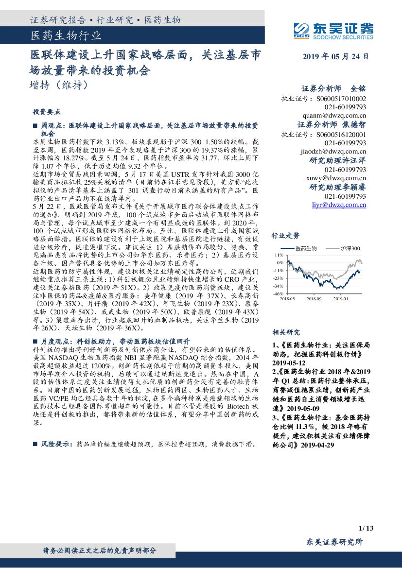 东吴证券:医药生物行业:医联体建设上升国家战略层面,关注基层市场放量带来的投资机会.pdf