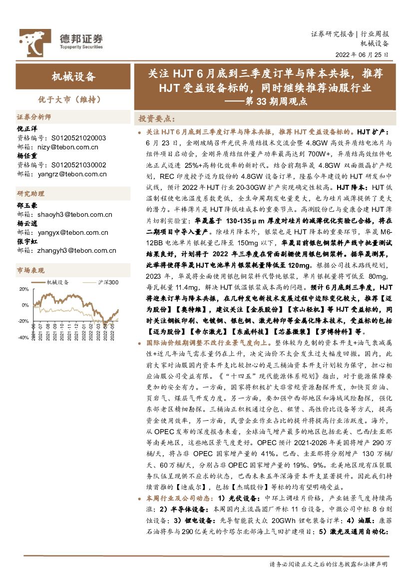 德邦证券:机械设备第33期周观点:关注HJT6月底到三季度订单与降本共振,推荐HJT受益设备标的,同时继续推荐油服行业.pdf
