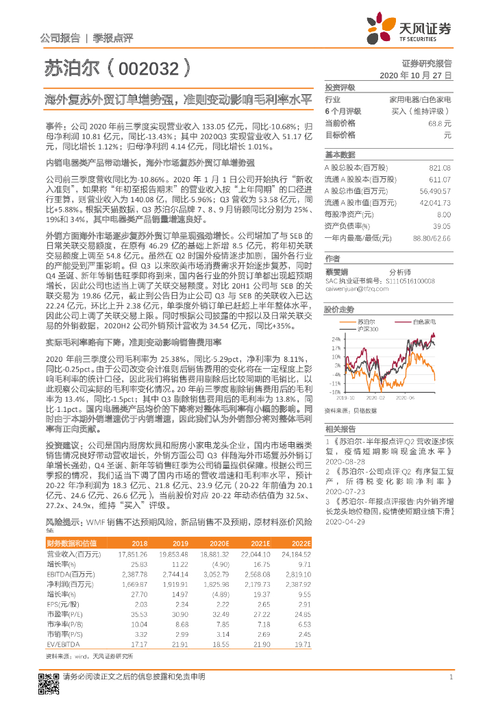 天风证券:苏泊尔(002032)-海外复苏外贸订单增势强,准则变动影响毛利率水平.pdf