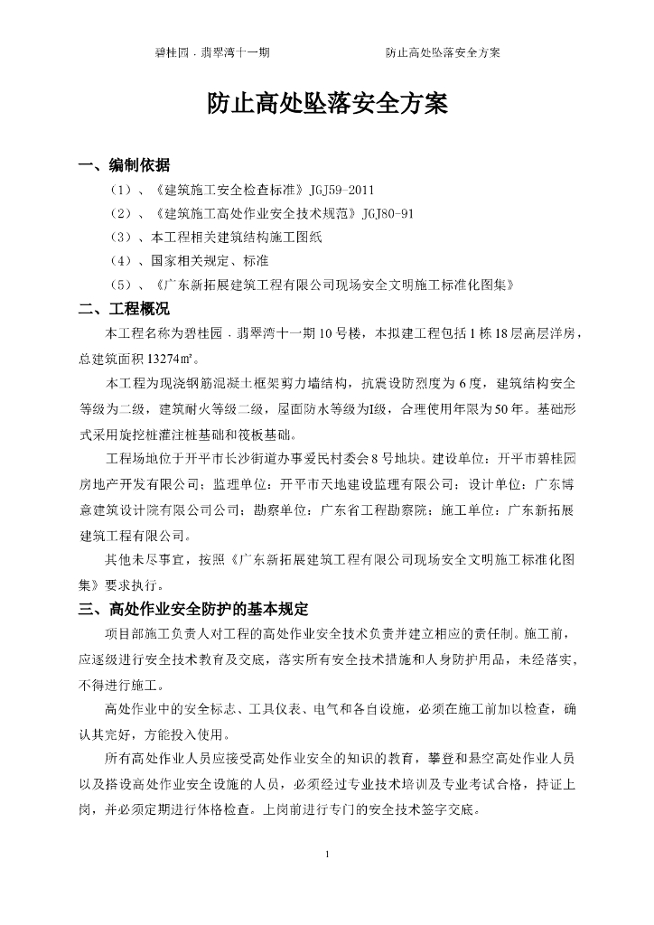 知名地产翡翠湾防高处坠落安全施工方案.doc