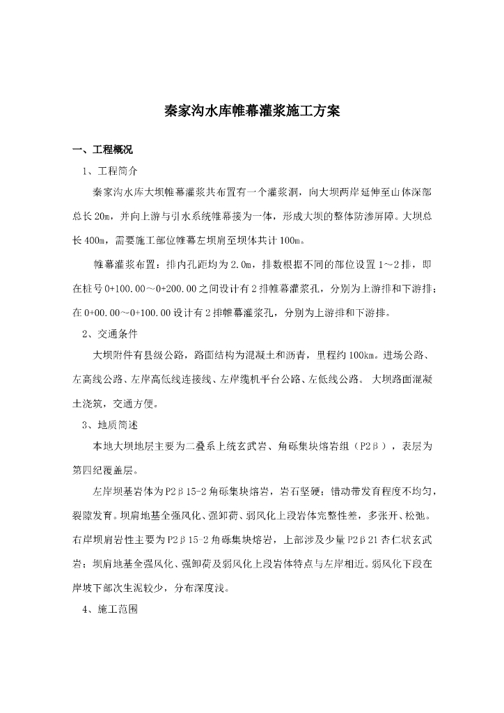水库大坝帷幕灌浆施工方案Word版(共23页).doc
