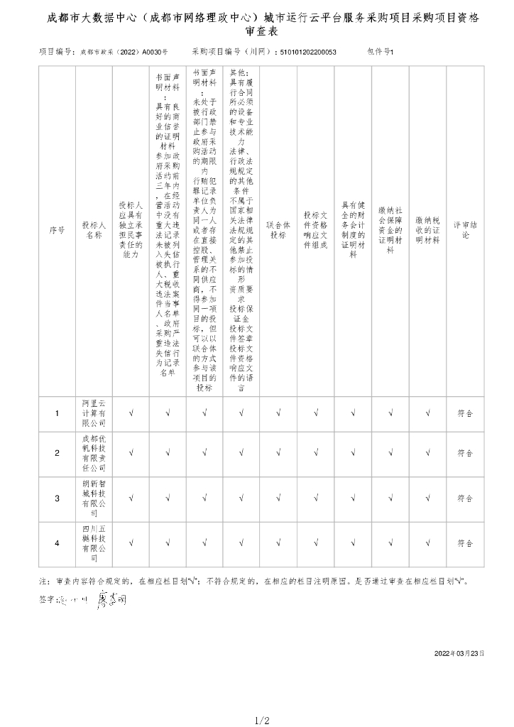 成都市大数据中心(成都市网络理政中心)城市运行云平台服务采购项目 资格审查表.pdf