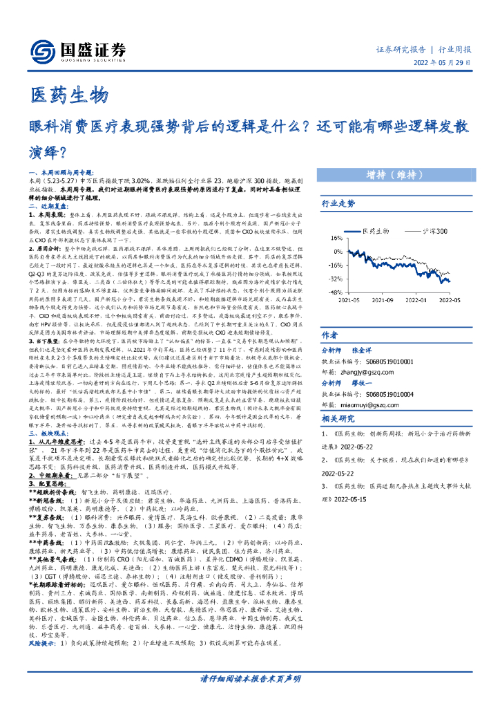 国盛证券:医药生物行业周报:眼科消费医疗表现强势背后的逻辑是什么?还可能有哪些逻辑发散演绎?.pdf