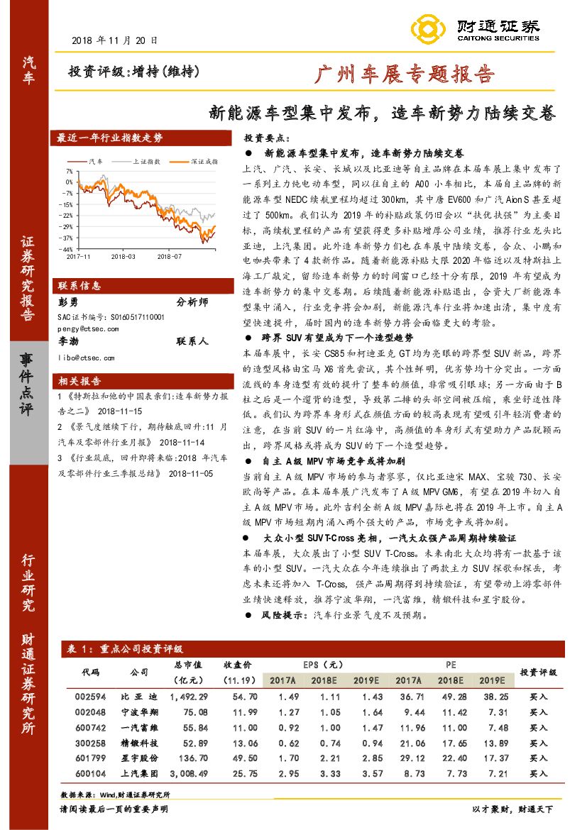 财通证券:汽车行业广州车展专题报告:新能源车型集中发布,造车新势力陆续交卷.pdf
