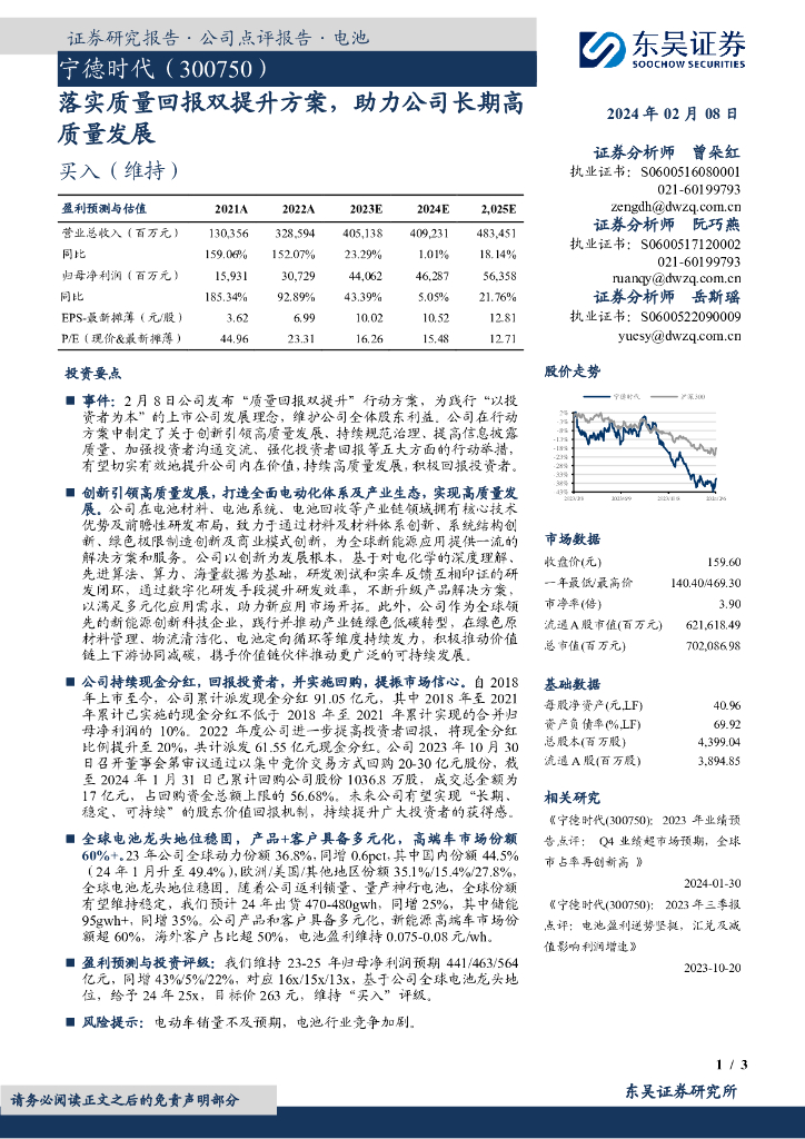 东吴证券:宁德时代(300750)-落实质量回报双提升方案,助力公司长期高质量发展.pdf