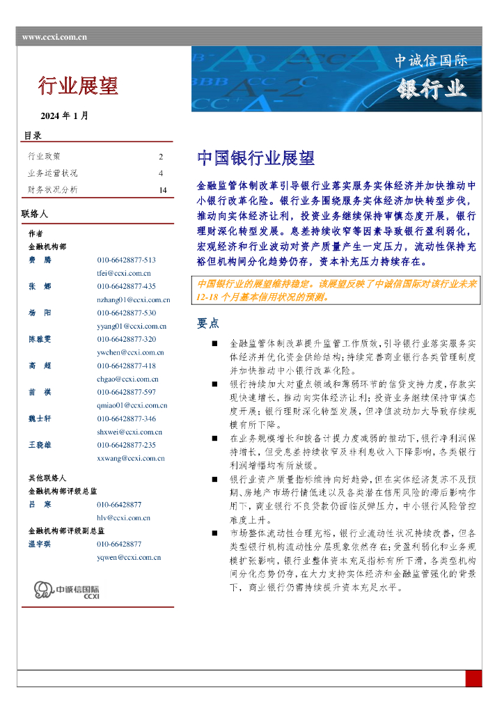 中诚信国际:中国银行业展望.pdf