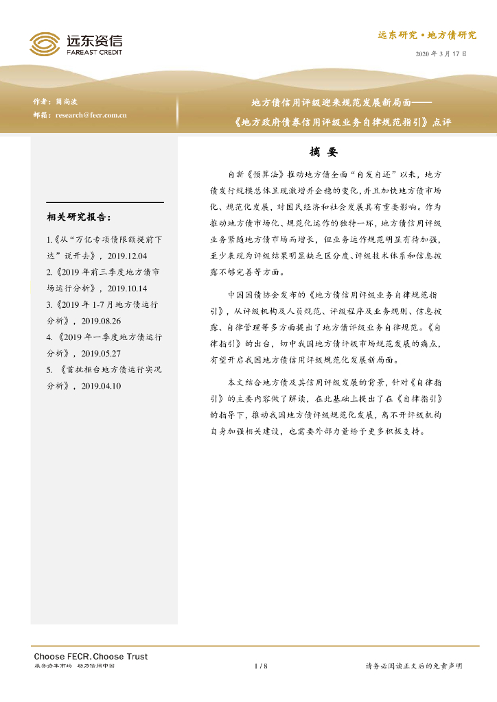 远东资信:地方债信用评级迎来规范发展新局面.pdf