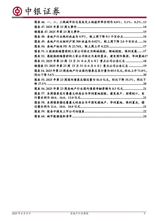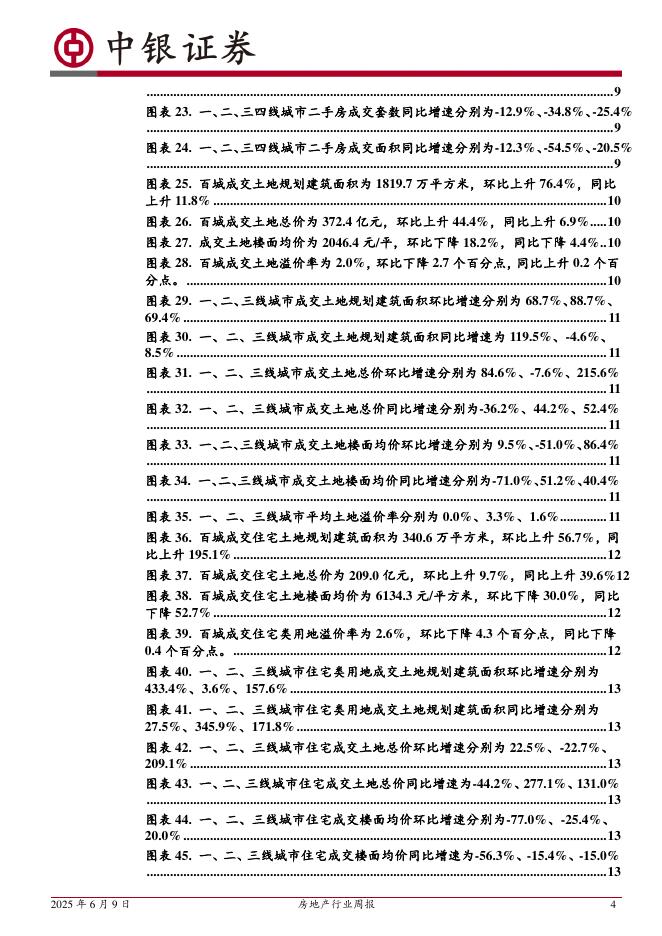 中银证券:房地产行业周报:房地产行业第23周周报(2025年5月31日-2025年6月6日)本周新房二手房成交面积同环比均走弱,土拍溢价率持续下滑新房成交面积环比由正转负,同比降幅扩大。二手房成交面积同环比皆降幅.pdf