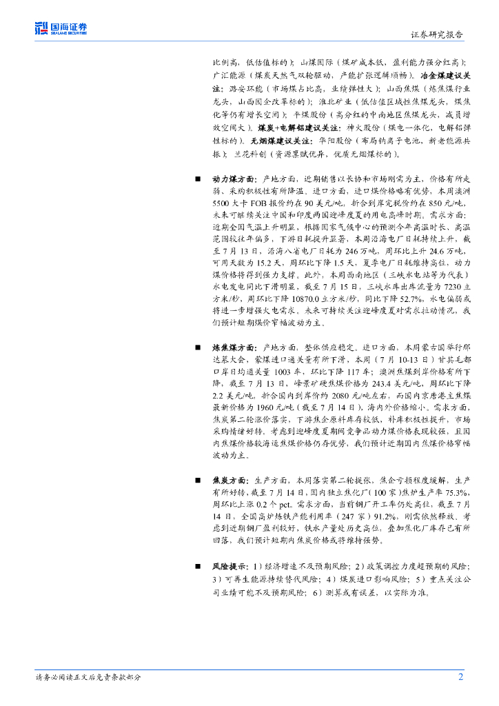 国海证券:煤炭开采行业周报:高温持续日耗不断攀升,煤价窄幅波动为主.pdf