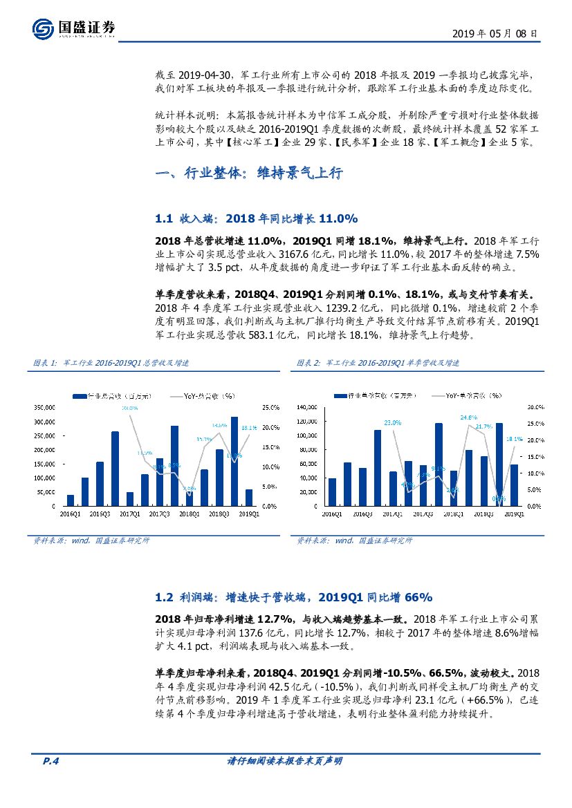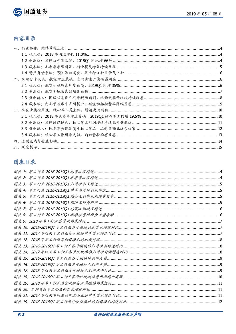国盛证券:军工2018年报及2019一季报分析:维持景气上行,航空表现最优.pdf