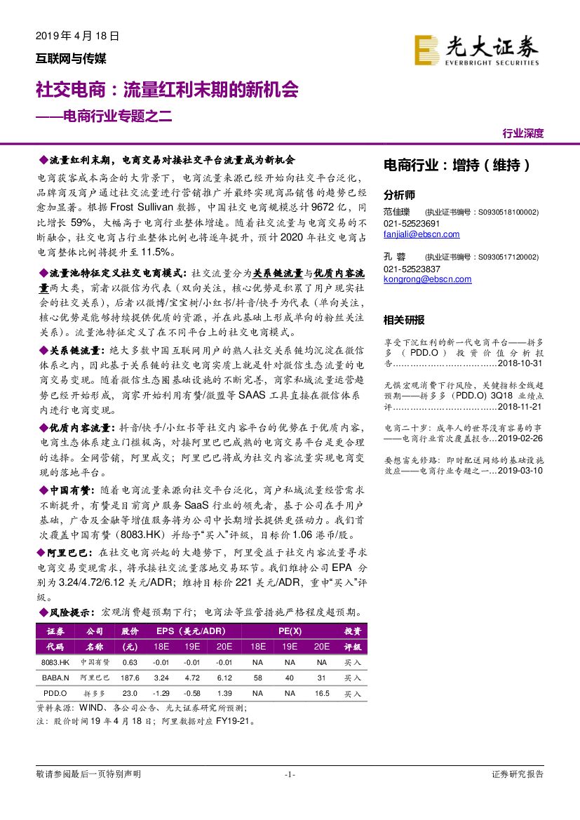 光大证券:电商行业专题之二:社交电商:流量红利末期的新机会.pdf