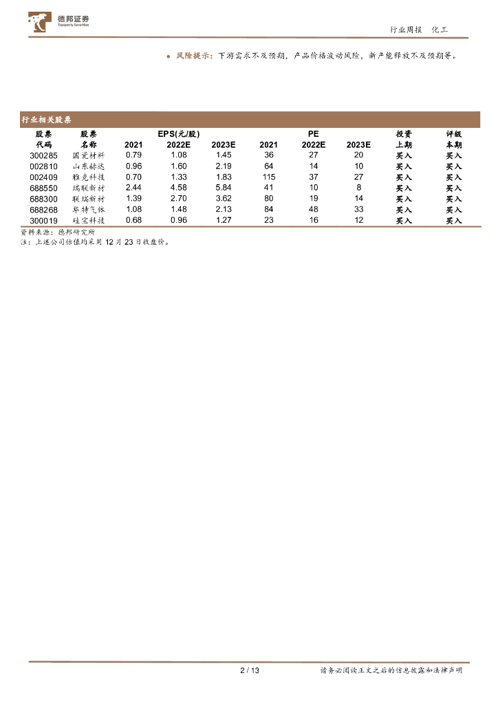 德邦证券:化工新材料行业周报:日本政府将半导体等11个领域的物资指定为“特定重要物资”,3M冷却剂绝版2025半导体面临停产危机.pdf