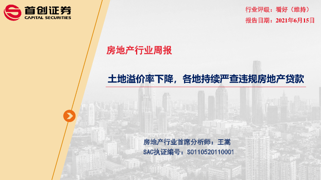 首创证券:房地产行业周报:土地溢价率下降,各地持续严查违规房地产贷款.pdf