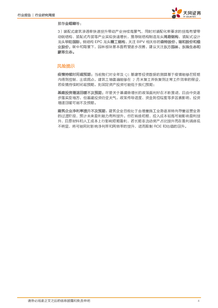 天风证券:建筑装饰行业研究周报:继续沿低估值蓝筹和绿色建筑产业链两主线寻找投资机会.pdf