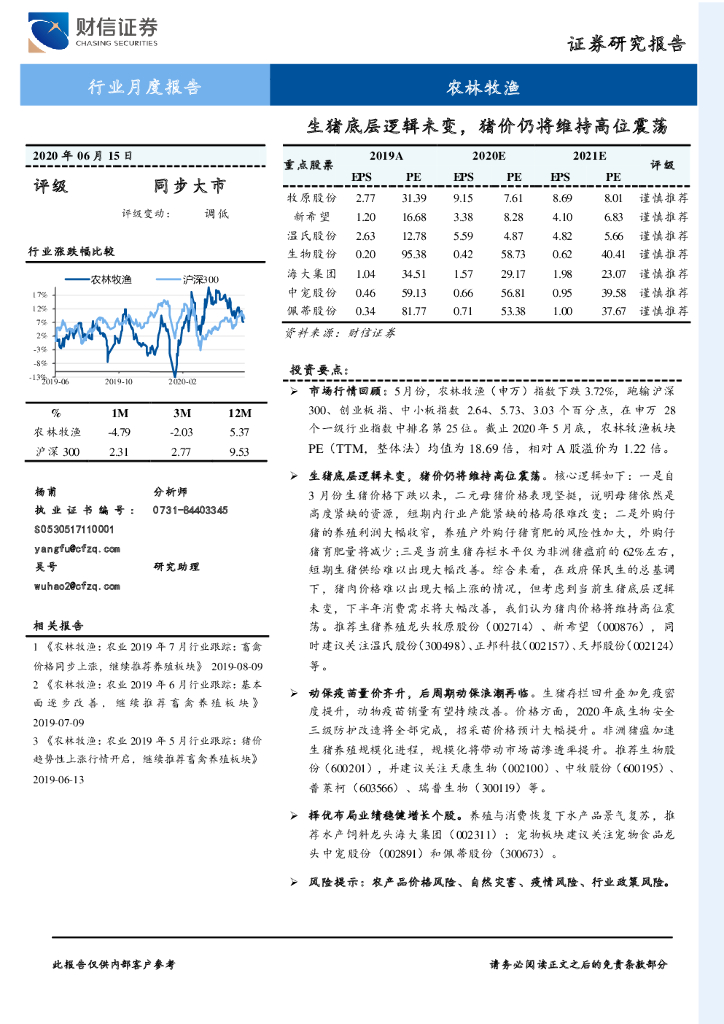 财信证券:农林牧渔行业月度报告:生猪底层逻辑未变,猪价仍将维持高位震荡.pdf