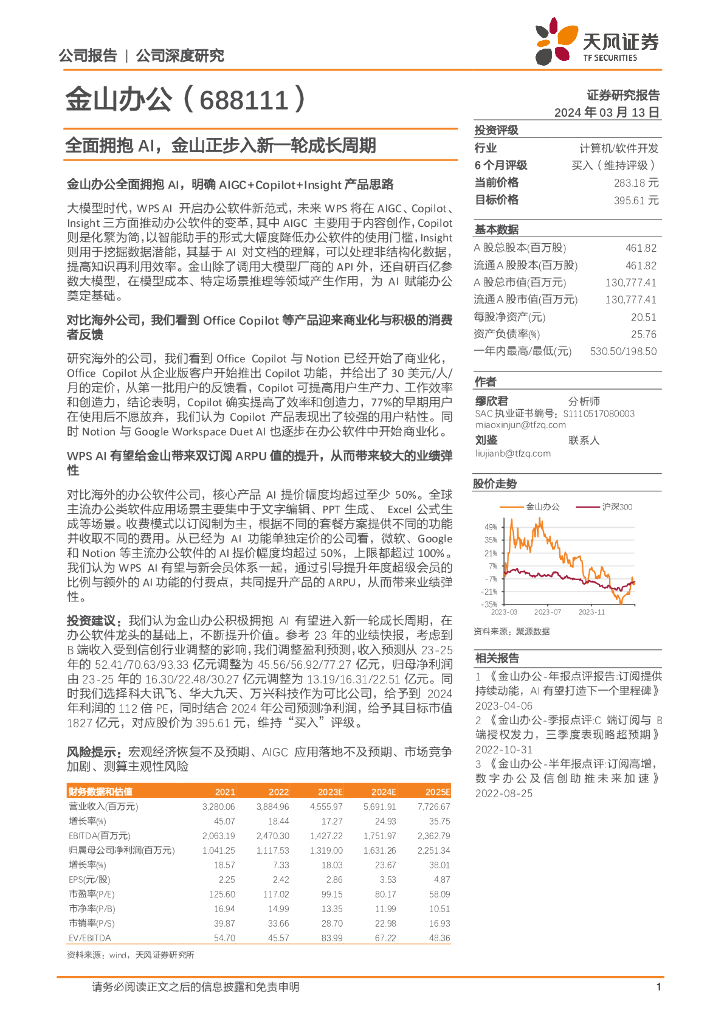 天风证券:金山办公(688111)-全面拥抱AI,金山正步入新一轮成长周期.pdf