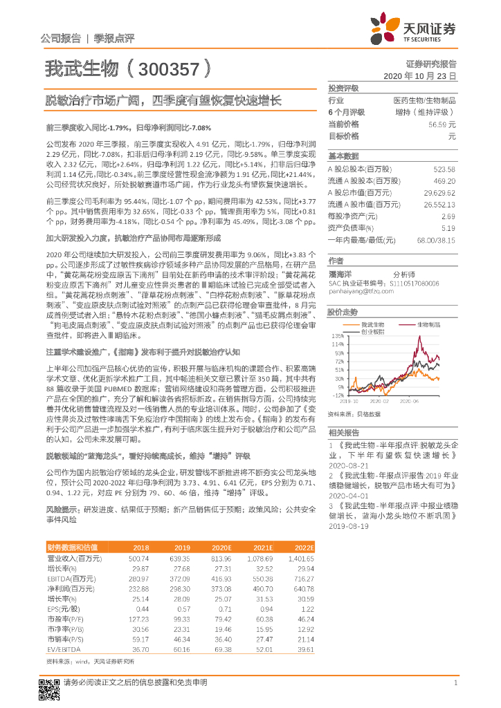 天风证券:我武生物(300357)-脱敏治疗市场广阔,四季度有望恢复快速增长.pdf