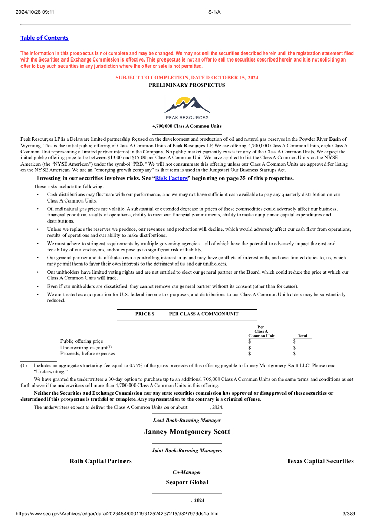 Peak Resources LP美股纳斯达克IPO上市招股说明书.pdf