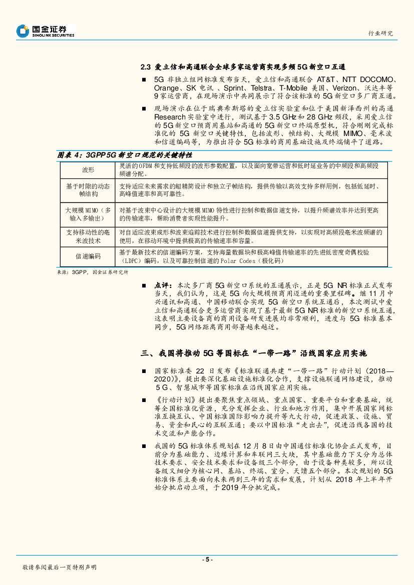 国金证券:通信行业研究:首个5G标准如期发布,产业链商用测试顺利.pdf