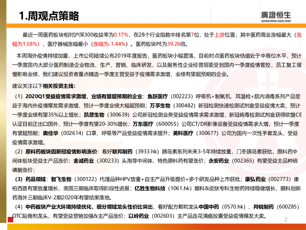 广证恒生证券研究所:医药生物行业周报:持续跟踪关注疫情影响,建议精选Q1业绩有望超预期及受益原料药涨价企业.pdf