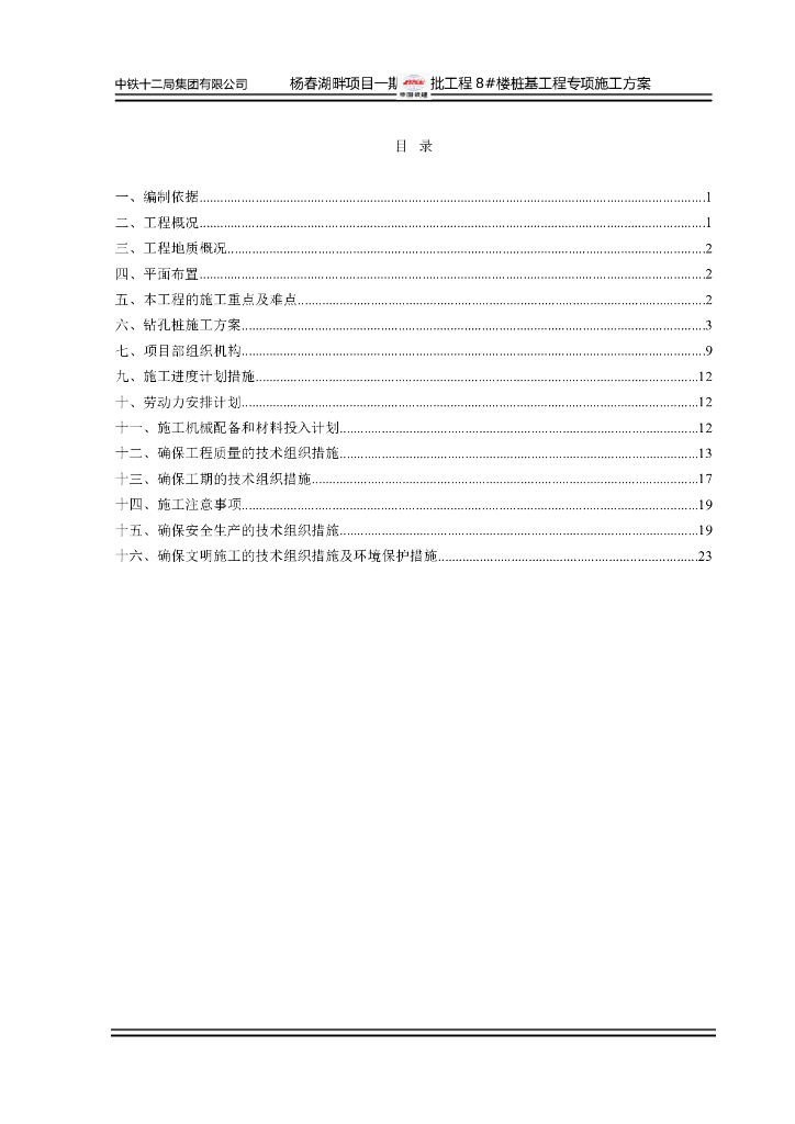 高层建筑旋挖钻孔灌注桩专项施工方案.doc