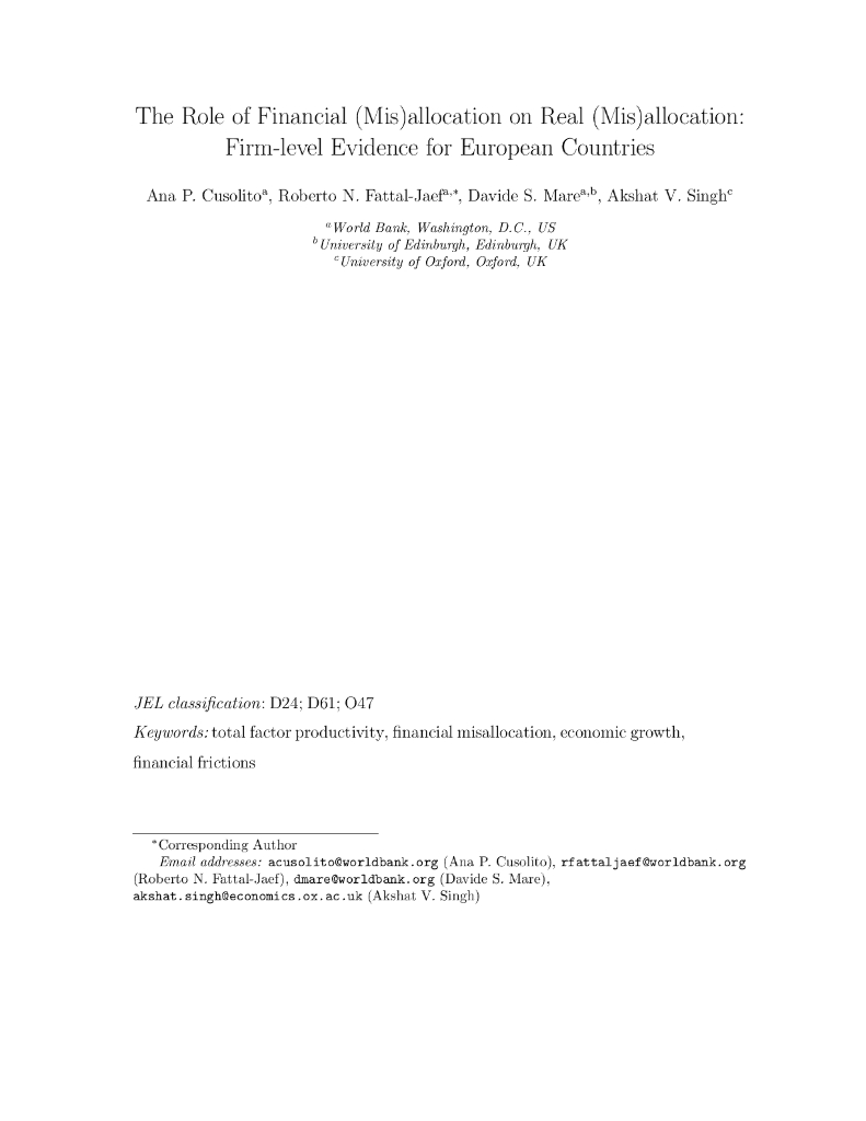 世界银行:金融(错误)配置对实际(错误)分配的作用:欧洲国家的企业级证据(英文版).pdf