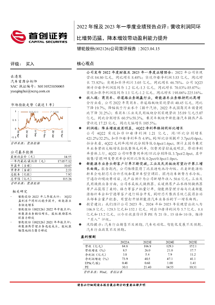首创证券:银轮股份(002126)-公司简评报告:2022年报及2023年一季度业绩预告点评:营收利润同环比增势迅猛,降本增效带动盈利能力提升.pdf
