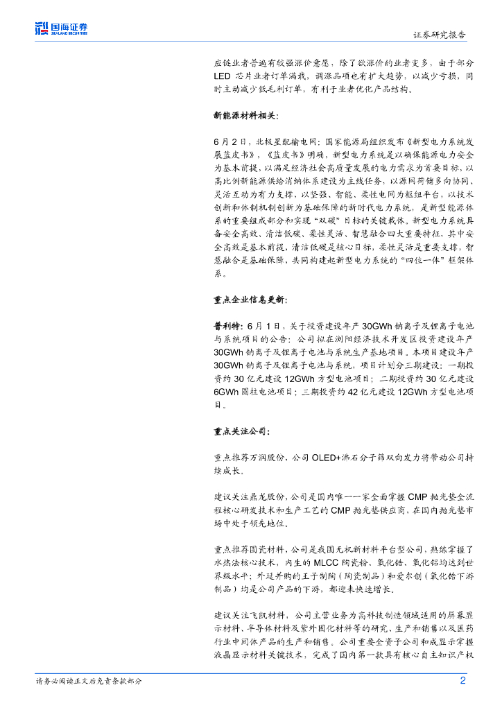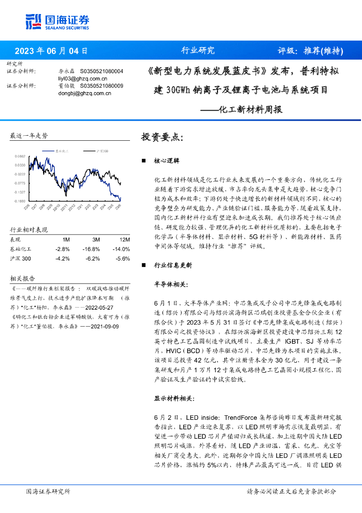 国海证券:化工新材料周报:《新型电力系统发展蓝皮书》发布,普利特拟建30GWh钠离子及锂离子电池与系统项目.pdf