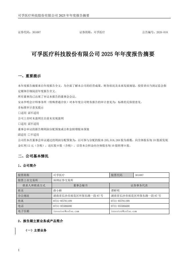 301087-可孚医疗:2025年年度报告摘要.pdf