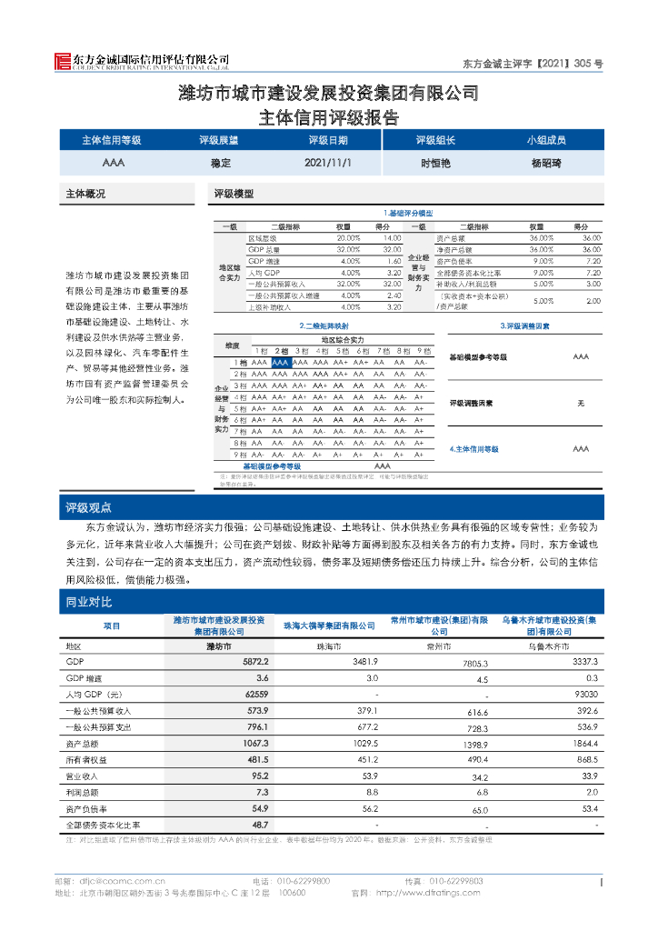 东方金诚:潍坊市城市建设发展投资集团有限公司主体信用评级报告.pdf