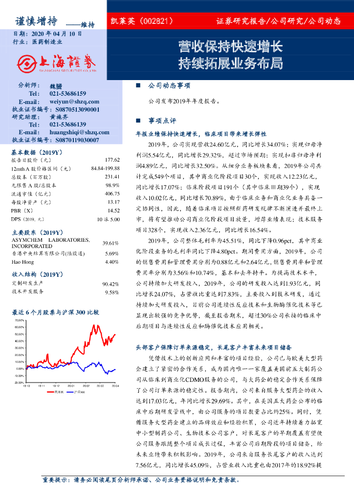 上海证券:凯莱英(002821)-营收保持快速增长,持续拓展业务布局.pdf