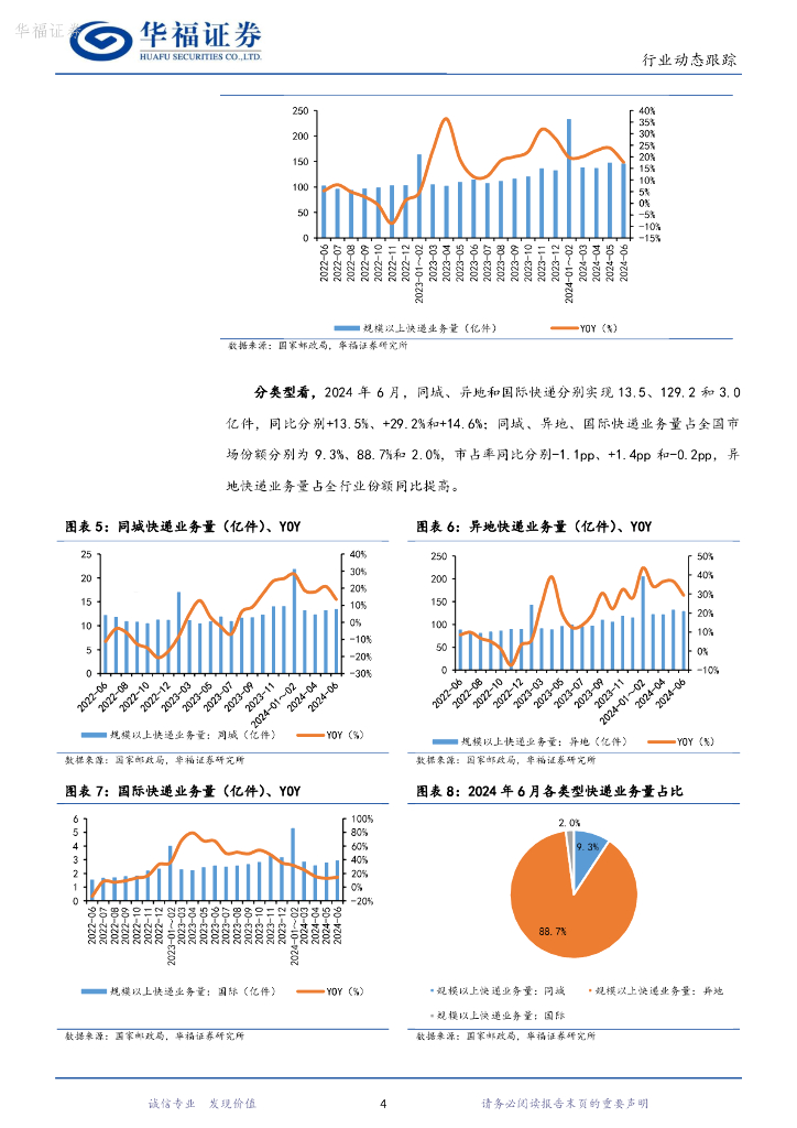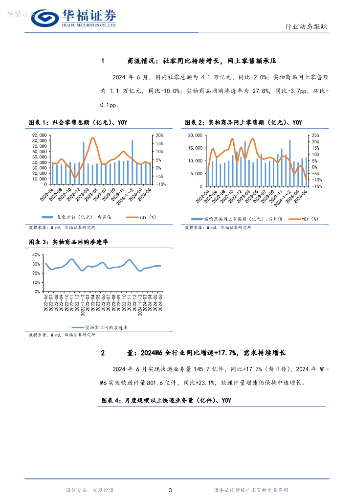 华福证券:2024年6月快递行业数据点评:6月行业件量同比+17.7%,件量同比增长.pdf