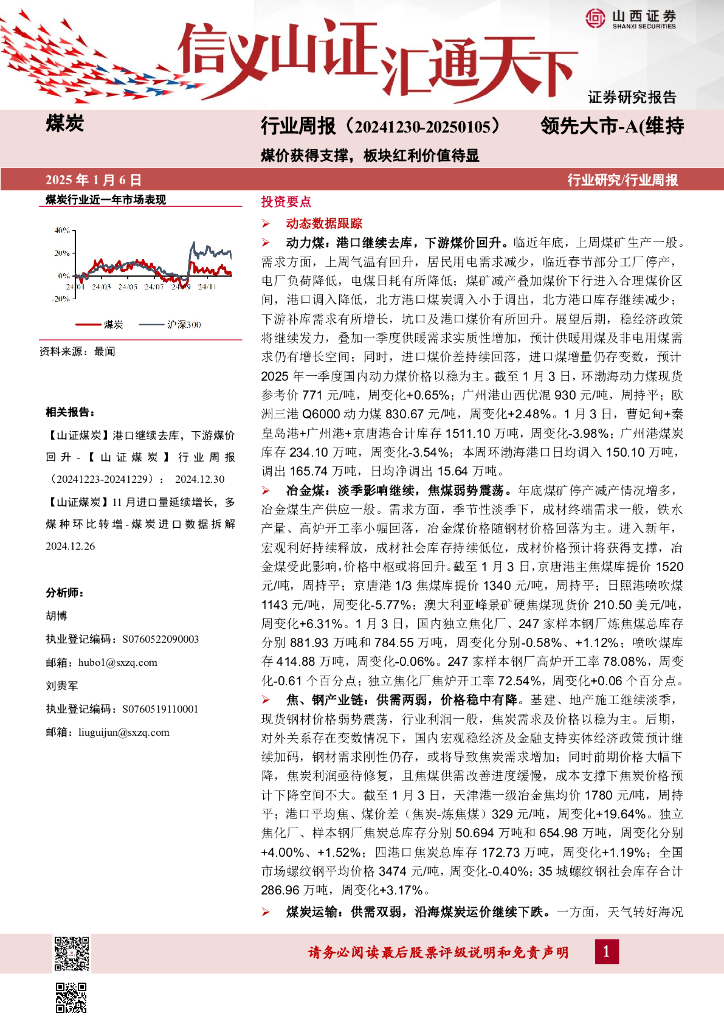山西证券:煤炭行业周报:煤价获得支撑,板块红利价值待显.pdf