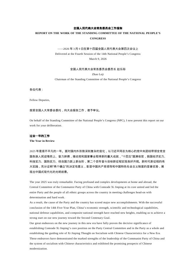 2026年全国人民代表大会常务委员会工作报告.doc