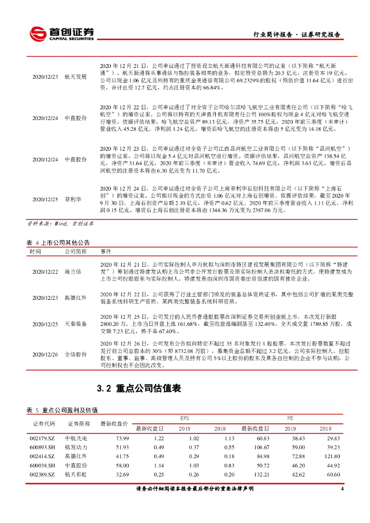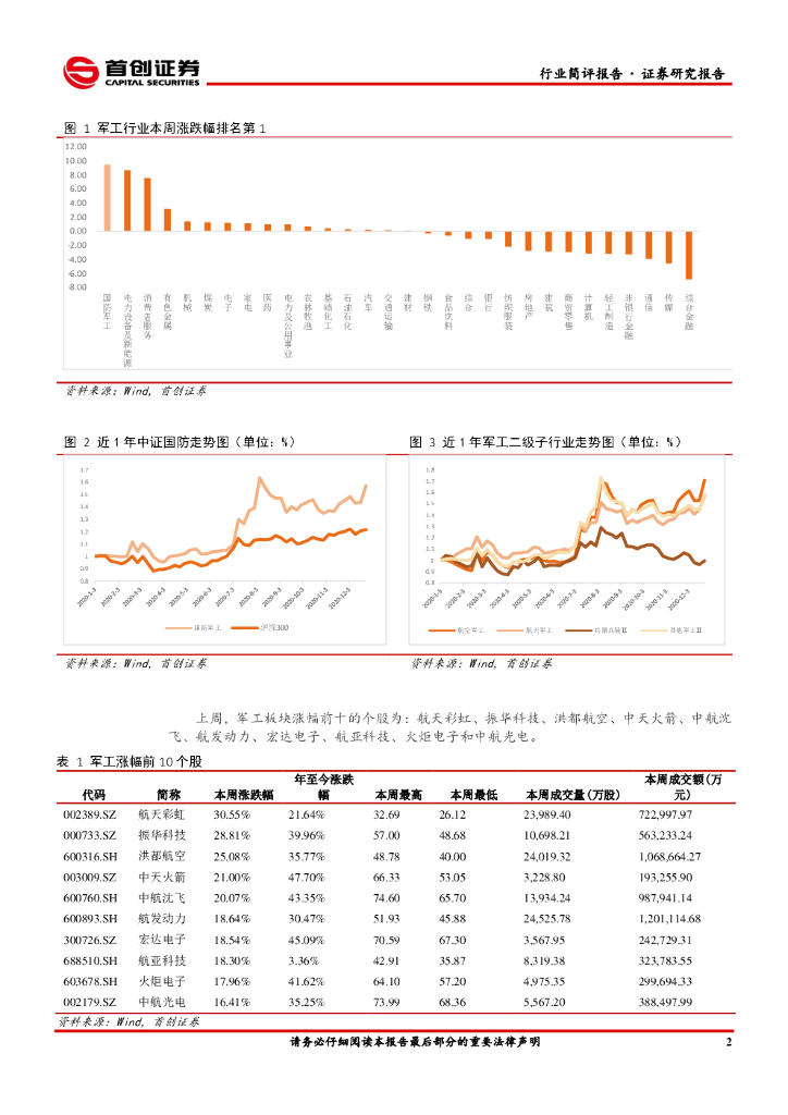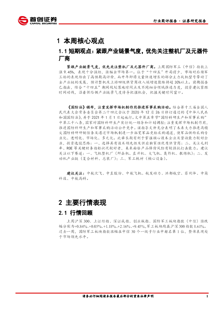 首创证券:国防军工行业周报:“十四五”黄金发展期,重点关注整机及核心部件.pdf