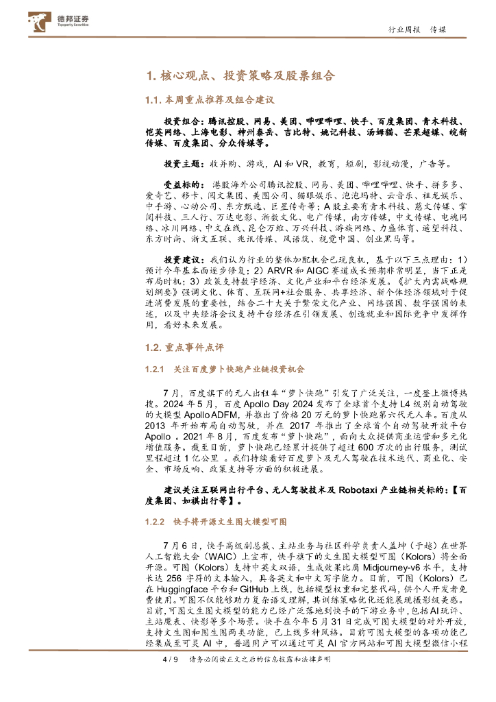 德邦证券:传媒互联网行业周报:关注百度萝卜快跑产业链投资机会,快手将开源文生图大模型可图.pdf