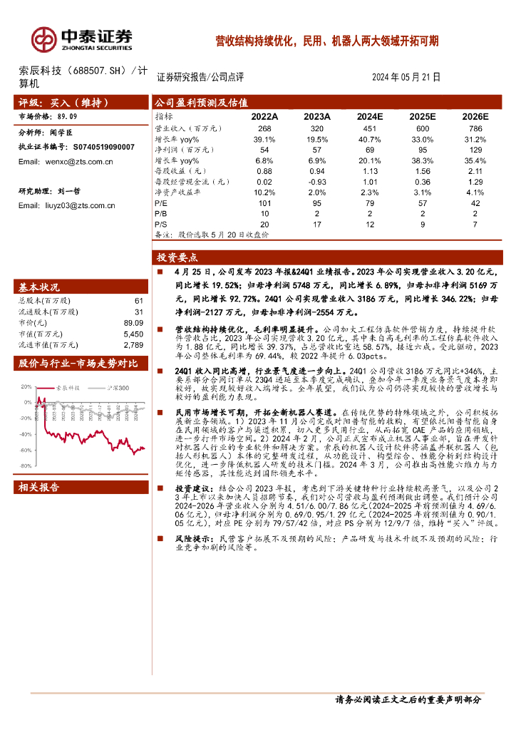 中泰证券:索辰科技(688507)-营收结构持续优化,民用、机器人两大领域开拓可期.pdf