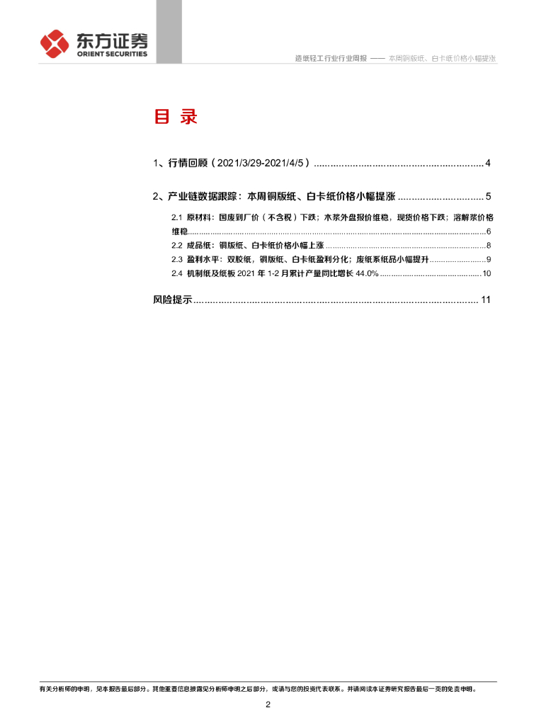 东方证券:造纸产业链数据每周速递:本周铜版纸、白卡纸价格小幅提涨.pdf