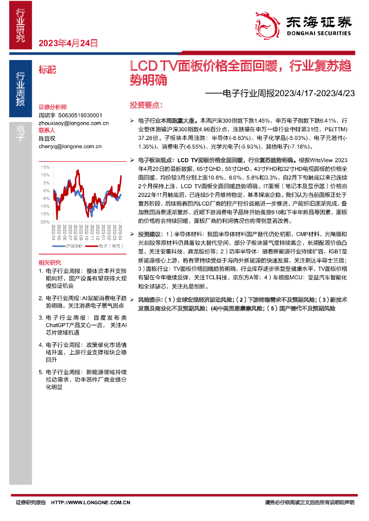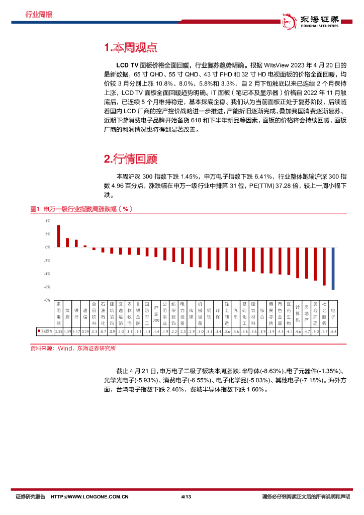 东海证券:电子行业周报:LCDTV面板价格全面回暖,行业复苏趋势明确.pdf