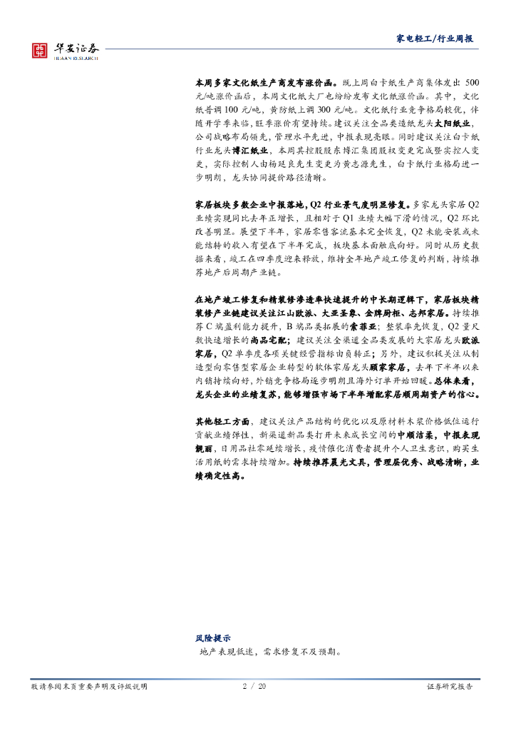 华安证券:家电轻工行业周报:关注Q3淡季可能的小家电回调机会,家居Q2景气度明显修复.pdf