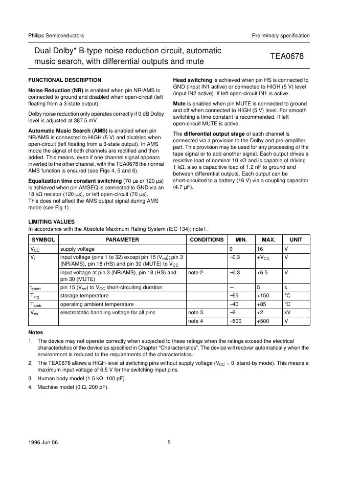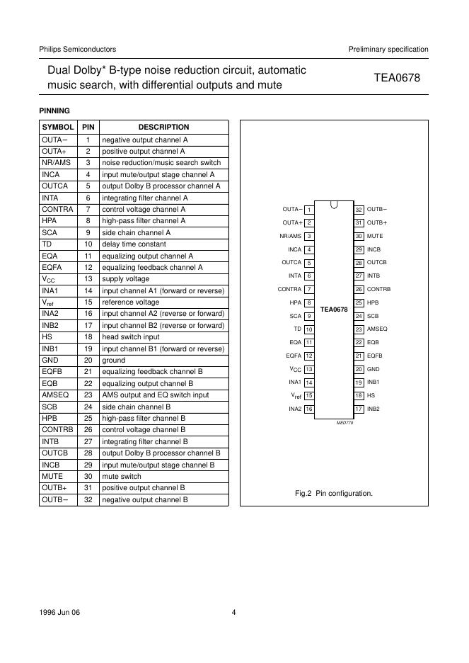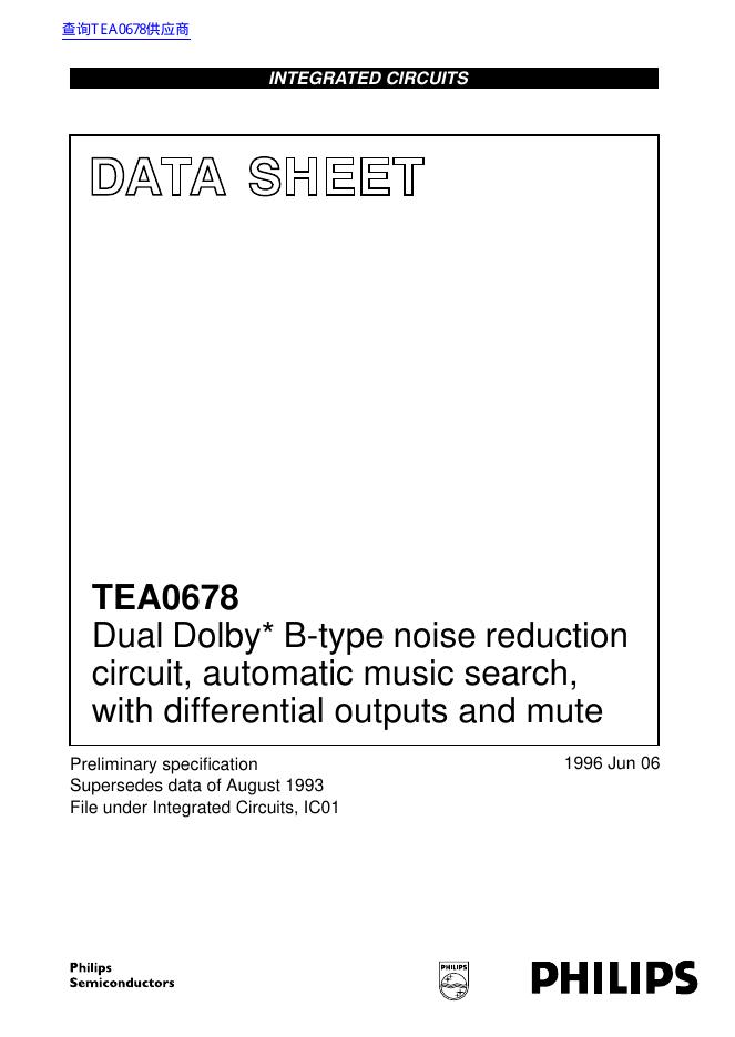 PHILIPS TEA0678 Dual Dolby* B-type noise reduction circuit, automatic music search, with differential outputs and mute 数据手册.pdf
