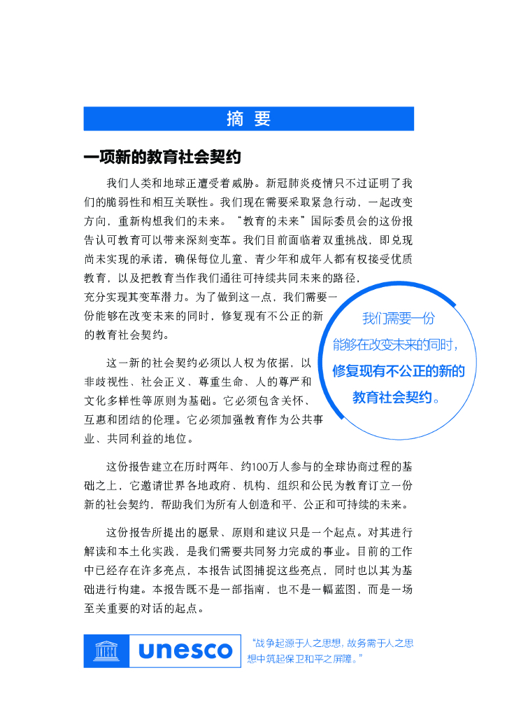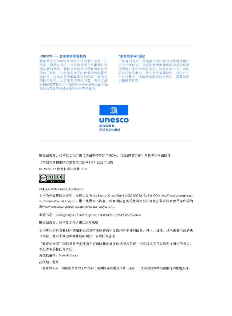 联合国教科文组织:一起重新构想我们的未来:为教育打造新的社会契约.pdf