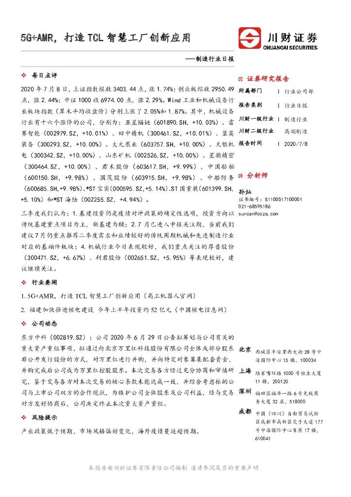 川财证券:制造行业日报:5G+AMR,打造TCL智慧工厂创新应用.pdf