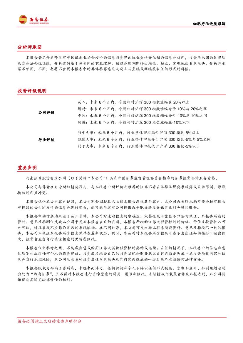 西南证券:医药生物:细胞治疗指导原则出台,极大利好在研项目.pdf